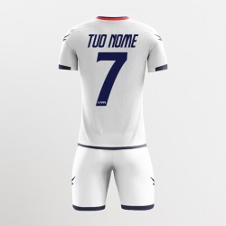 Kit calcio stampa sublimatica ispirato ai colori delle divise dei club di punta della serie A. Maglia manica corta + pantaloncino, con colletto a giro collo. Zeus lettering davanti e logo saetta sulle spalle della maglia e sui lati del pantaloncino. Svariate combinazioni di colori. Ideale per il gioco e gli allenamenti nel periodo primavera/estate. Personalizzabile con logo nome e numero