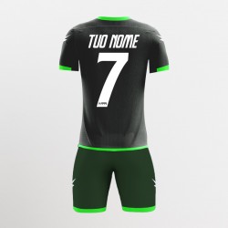 Kit calcio stampa sublimatica ispirato ai colori delle divise dei club di punta della serie A. Maglia manica corta + pantaloncino, con colletto a giro collo. Zeus lettering davanti e logo saetta sulle spalle della maglia e sui lati del pantaloncino. Svariate combinazioni di colori. Ideale per il gioco e gli allenamenti nel periodo primavera/estate. Personalizzabile con logo nome e numero