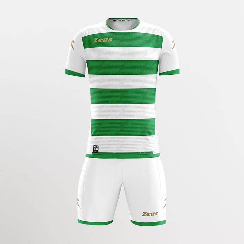 Kit calcio stampa sublimatica ispirato ai colori delle divise dei club di punta della serie A. Maglia manica corta + pantaloncino, con colletto a giro collo. Zeus lettering davanti e logo saetta sulle spalle della maglia e sui lati del pantaloncino. Svariate combinazioni di colori. Ideale per il gioco e gli allenamenti nel periodo primavera/estate. Personalizzabile con logo nome e numero