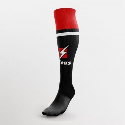 Calzettoni alta resistenza altezza ginocchio con fascia elastica al centro del piede per assicurare un buon sostegno. Sei combinazioni di colori con fascia sotto al ginocchio a contrasto. Zeus logo davanti sulla centrale. Ideale per il gioco e gli allenamenti negli sport di squadra (calcio, basket, volley, rugby, pallamano, hockey).